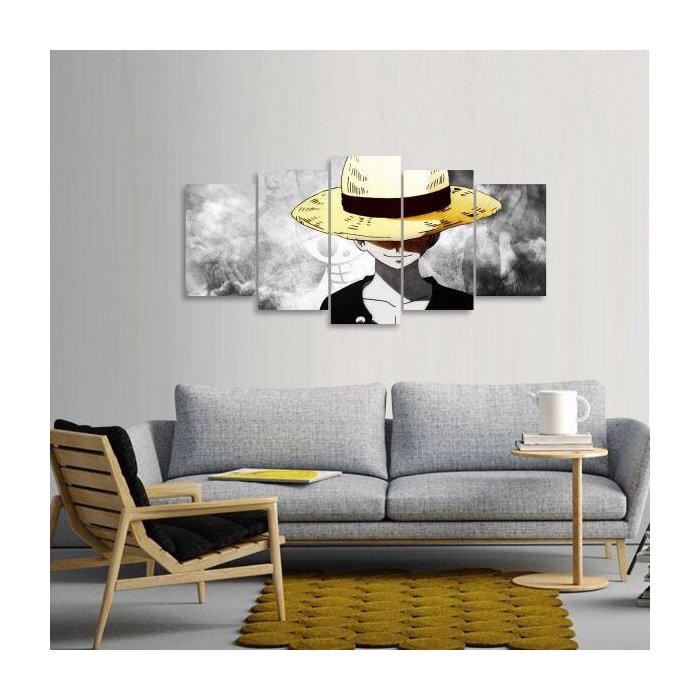 Quadro Luffy One Piece Mosaico 5 Peças Para Quarto 125x60