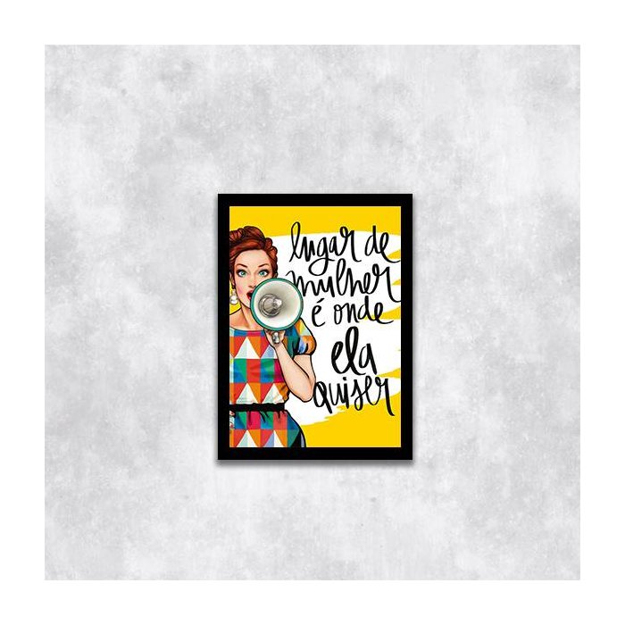 Quadro Lugar De Mulher é Onde Ela Quiser 24x18cm - com vidro:Madeira preta
