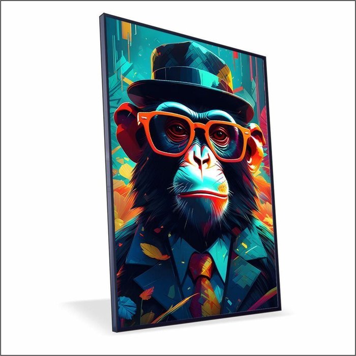 Quadro Macaco de Chapéu Vinil sem Vidro Tamanho Moldura 60x40 Caixa Preta