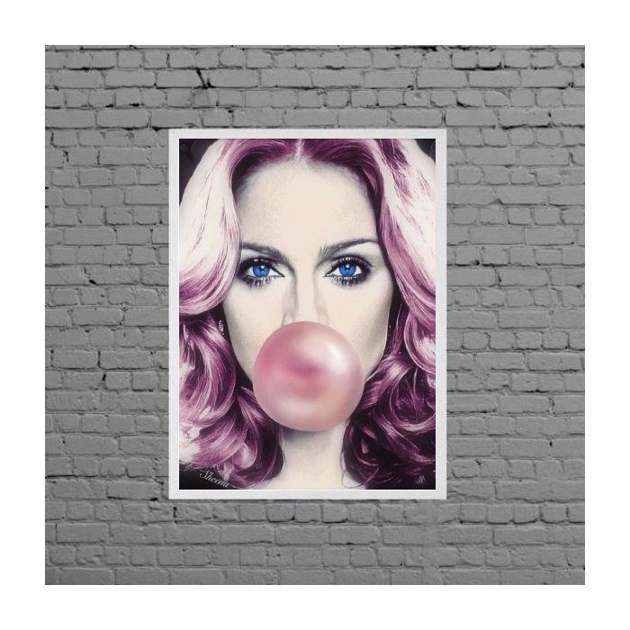 Quadro Madonna Bubble Gum 45x34cm:Madeira branca