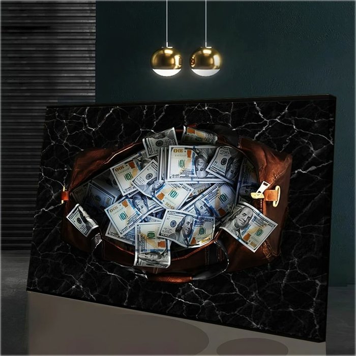 Quadro Maleta de Dinheiro Dolares:120x80 cm/BORDA INFINITA