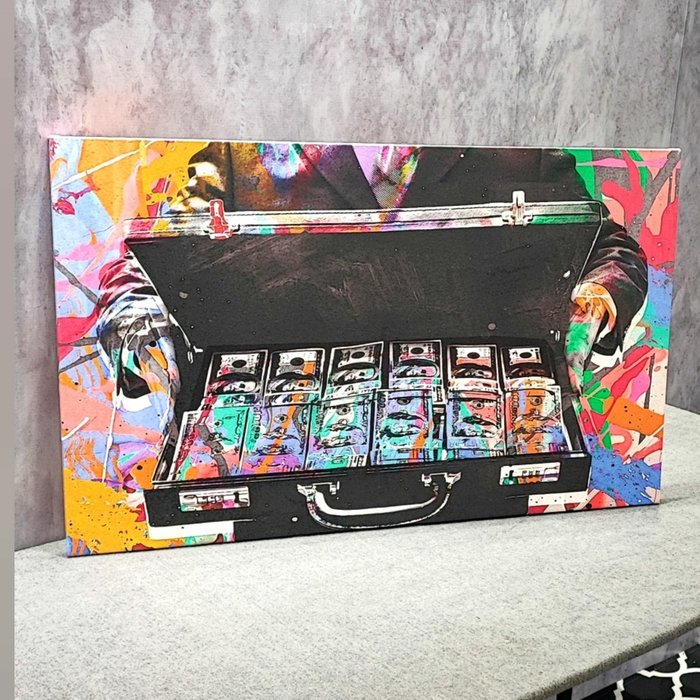 Quadro Maleta Dinheiro Wall Street:90x60 cm/BRANCA