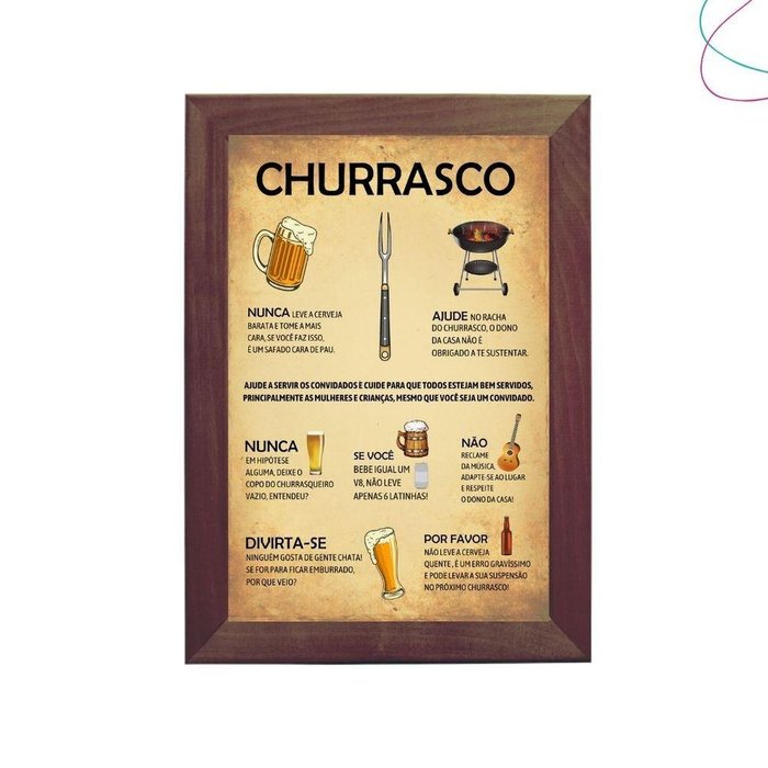 Quadro Manual Do Churrasco Area Gourmet Churrasqueira Cor Da Armação:tabaco