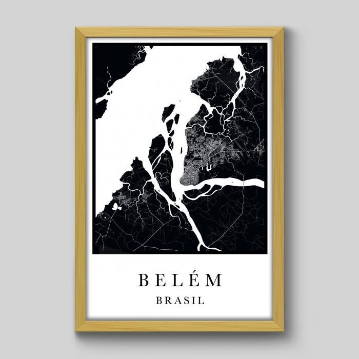Quadro Mapa Belém - 90x60cm - Moldura Caixa Madeira