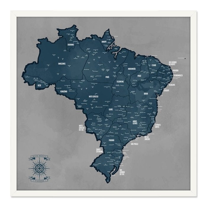 Quadro Mapa Brasil Pinar Viagens 80x80cm Cinza - MB