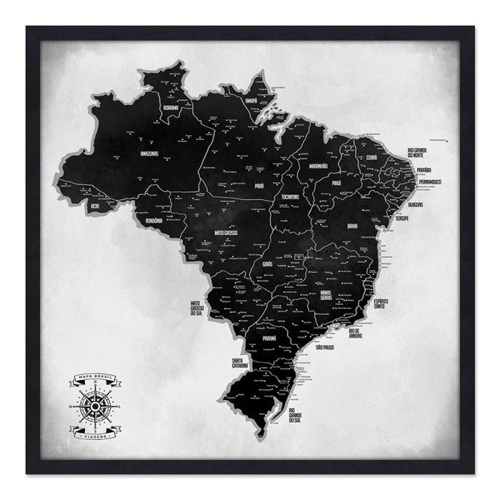 Quadro Mapa Brasil Pinar Viagens 80x80cm Preto e Branco - MP