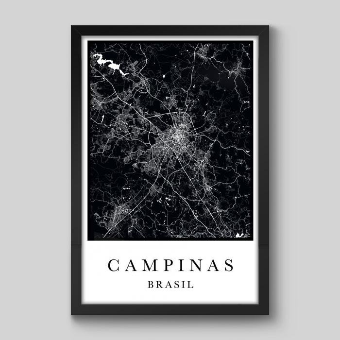 Quadro Mapa Campinas - 60x40cm - Moldura Caixa Preto