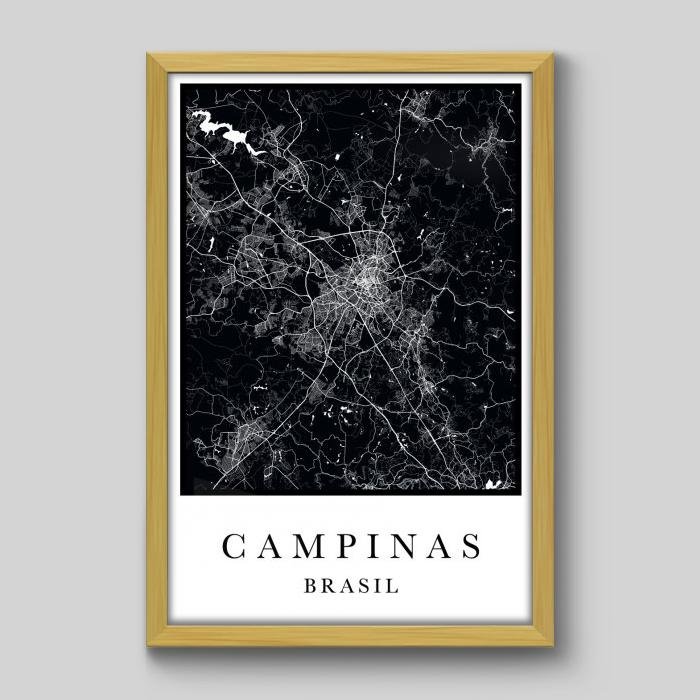 Quadro Mapa Campinas - 90x60cm - Moldura Caixa Madeira