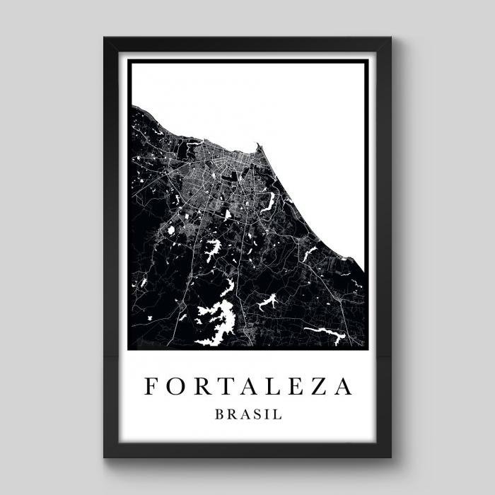 Quadro Mapa Fortaleza - 60x40cm - Moldura Padrão Preto