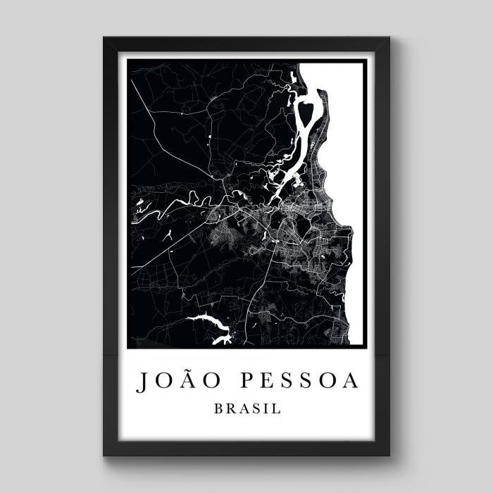 Quadro Mapa Joa?o Pessoa - 90x60cm - Moldura Caixa Preto
