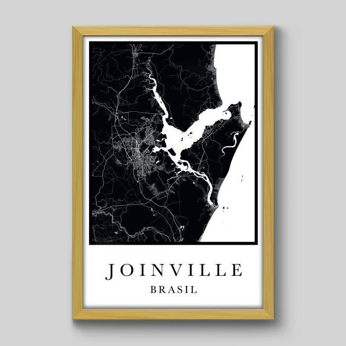 Quadro Mapa Joinville - 45x30cm - Moldura Padrão Madeira