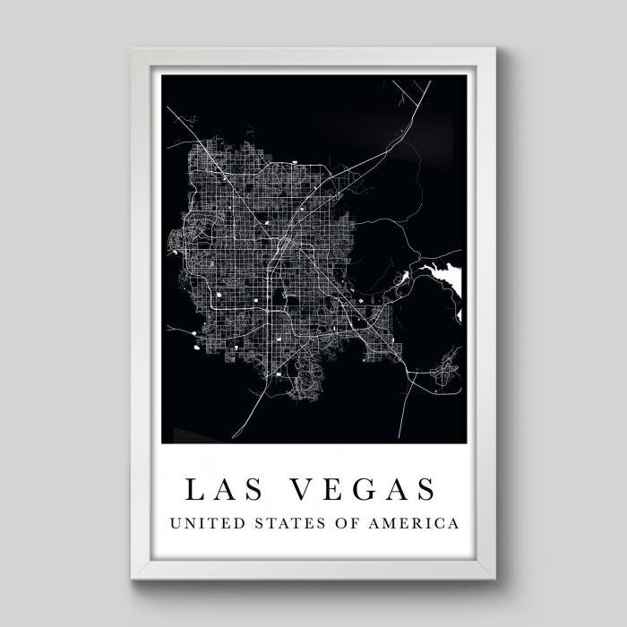 Quadro Mapa Las Vegas - 60x40cm - Moldura Padrão Branco