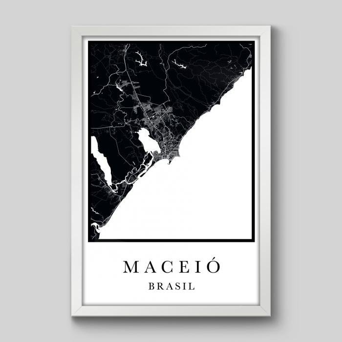 Quadro Mapa Maceio? - 45x30cm - Moldura Padrão Branco