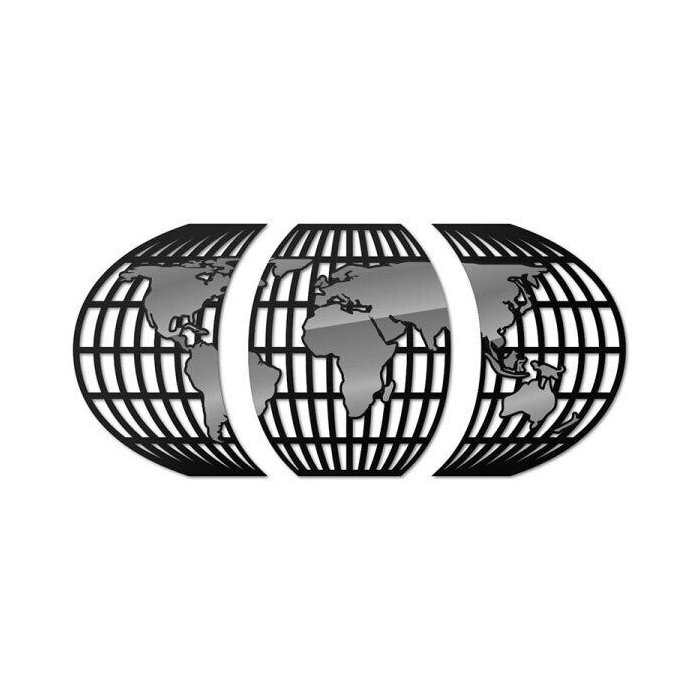 Quadro Mapa Mundi Globo Tradicional Prata Em 3 Partes