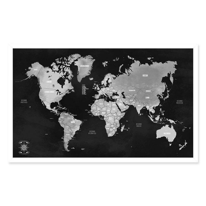 Quadro Mapa-Múndi Pinar Viagens 80x50cm Branco e Preto - MB