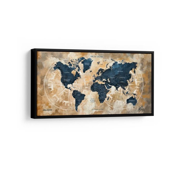 Quadro Mapa Pelo Mundo 100x50cm Moldura Preta