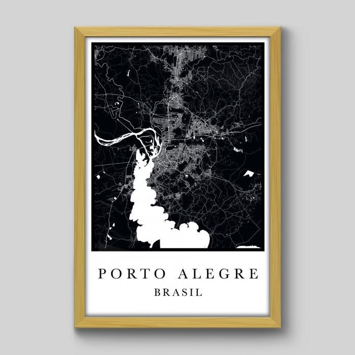 Quadro Mapa Porto Alegre - 45x30cm - Moldura Padrão Madeira
