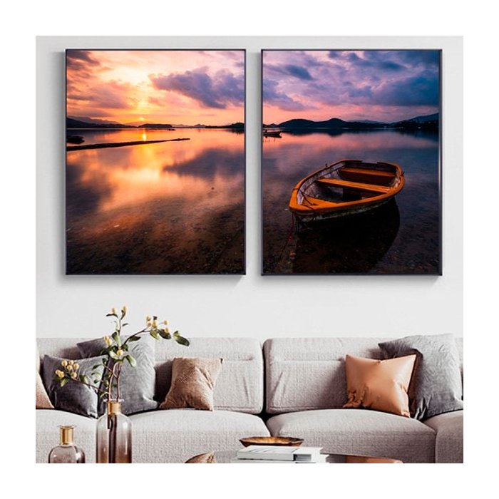 Quadro Mar e Barco - Kit 2 telas - 150 x 100 cm - Preta