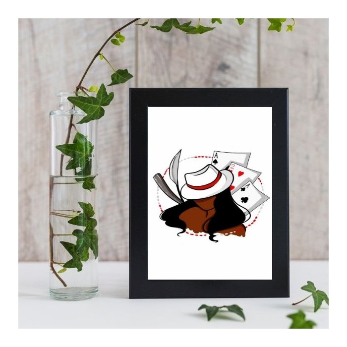 Quadro Maria Navalha Cartas De Baralho 24x18cm - com vidro:Madeira branca