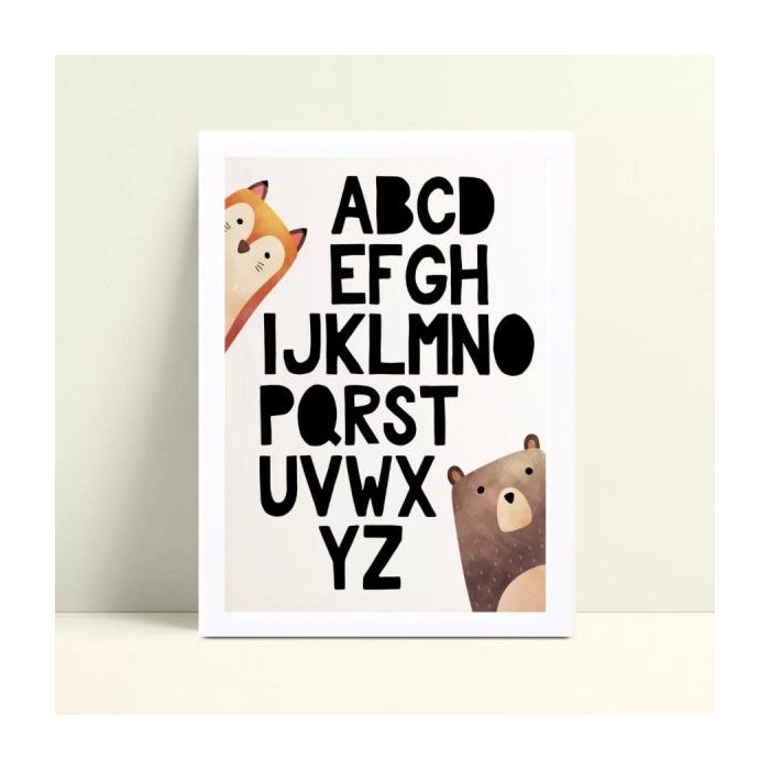 Quadro com moldura, Quadro mdf menina menino alfabeto urso animal.