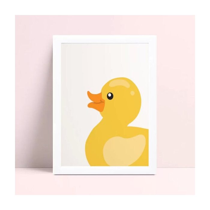 Quadro com moldura, Quadro mdf menina menino animal patinho amarelo.