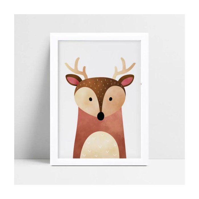 Quadro com moldura, Quadro mdf menina menino desenho rena.