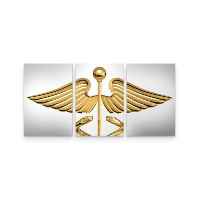 Quadro Medicina Contabilidade Caduceu Dourado Chassi em Mdf