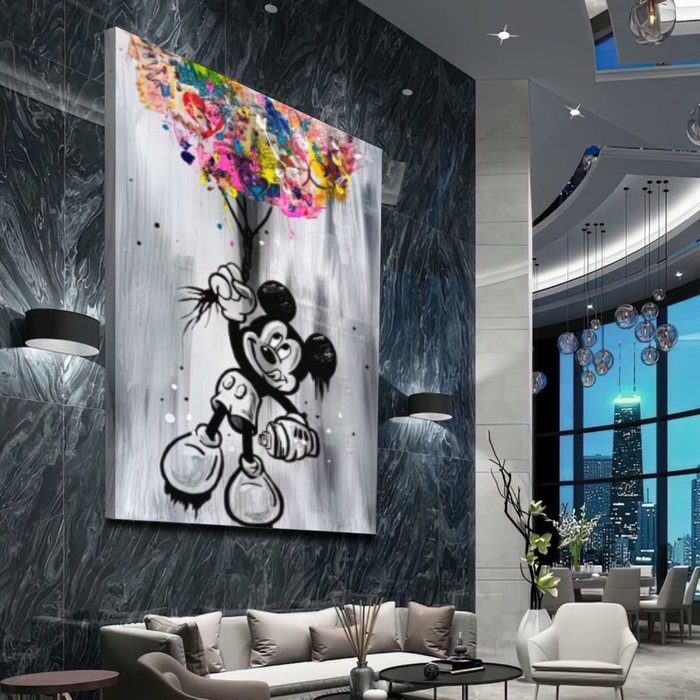 Quadro Mickey Mouse Balão Abstrato:90x60 cm/DOURADA