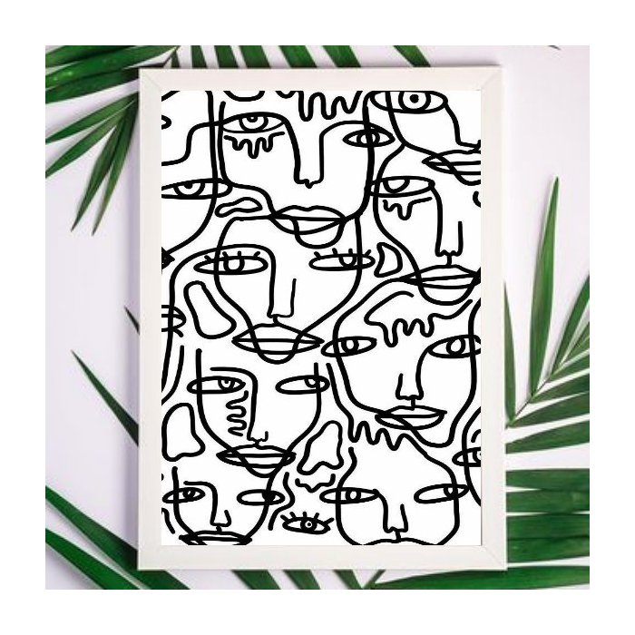 Quadro Minimalista Faces One line 24x18cm:madeira Preta Preta