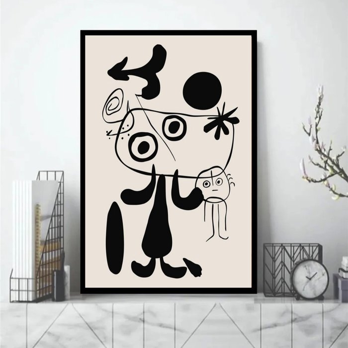 Quadro Miró Preto e Branco 45x34cm:moldura Branca Moldura branca