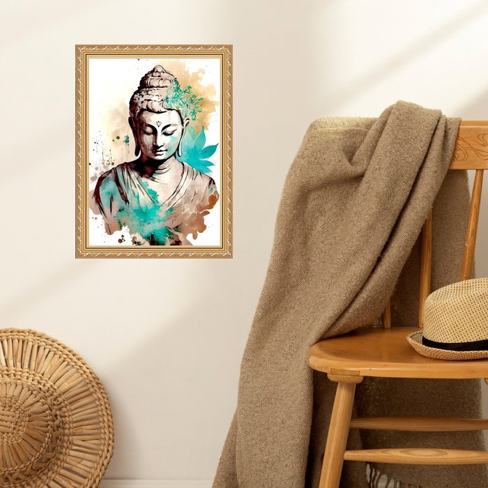 Quadro Moldura Dourada Aquarela Buda 24x18cm:com Acetato