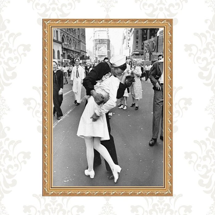 Quadro Moldura Dourada Beijo Segunda Guerra 24x18cm:com Acetato