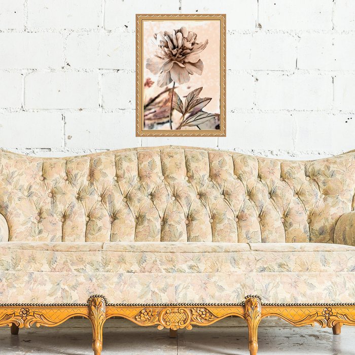 Quadro Moldura Dourada Flor Rosê 33x24cm:com Vidro