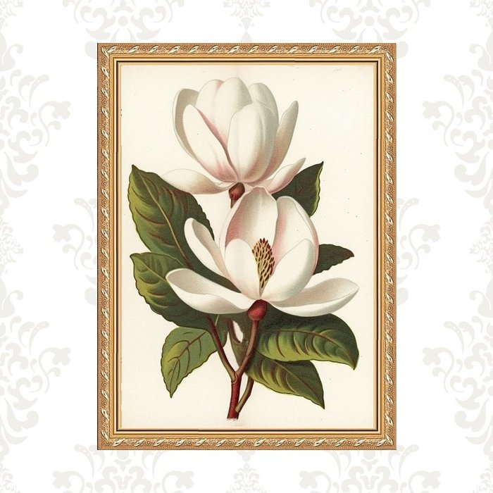 Quadro Moldura Dourada Flores Magnólia 33x24cm:com Acetato