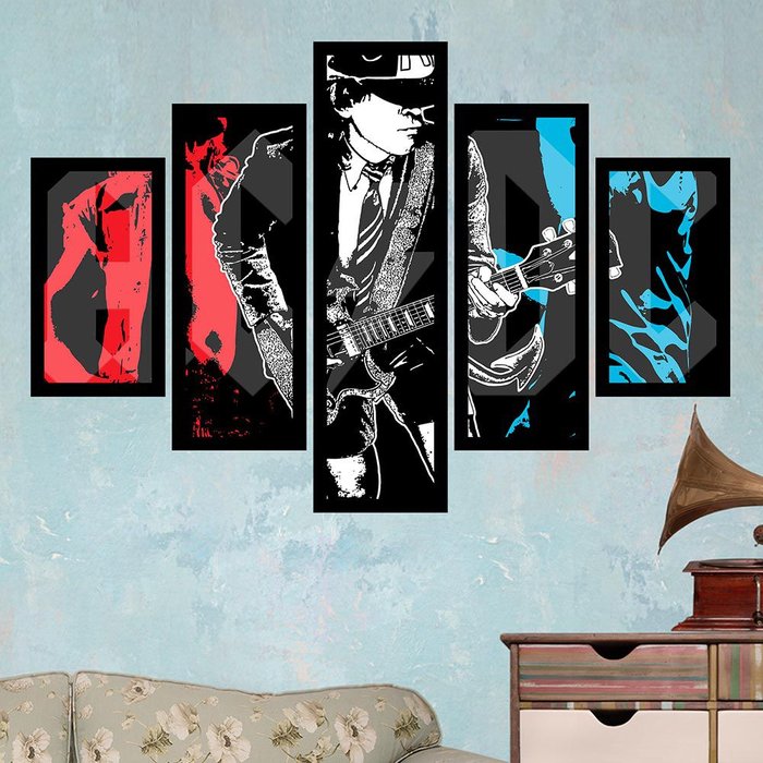Quadro Mosaico 5 Partes Ac/dc Com Moldura Quero Mais Quadros MOP5