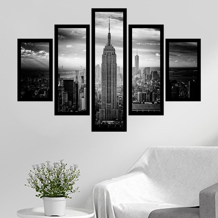 Quadro Mosaico 5 Partes Empire State P&b Com Moldura Quero Mais Quadros MOP5