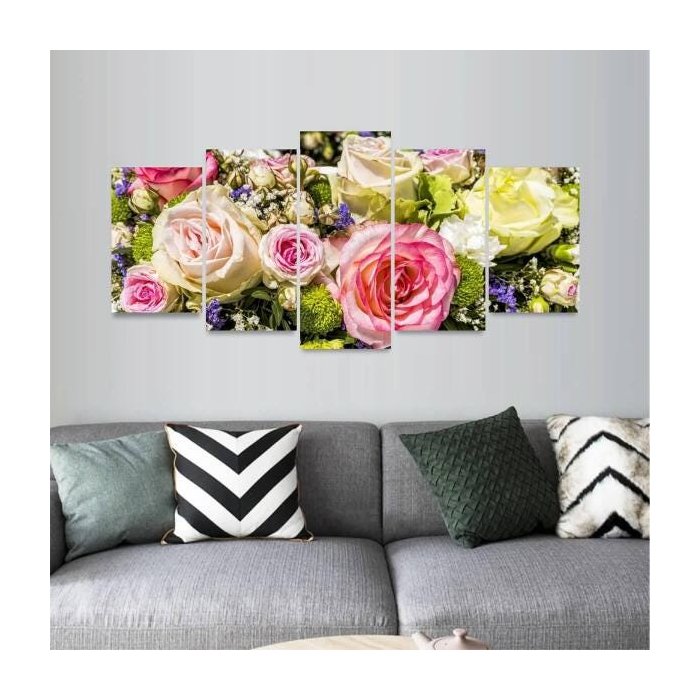Quadro Mosaico 5 Peças Artístico Flores Buquê Rosas
