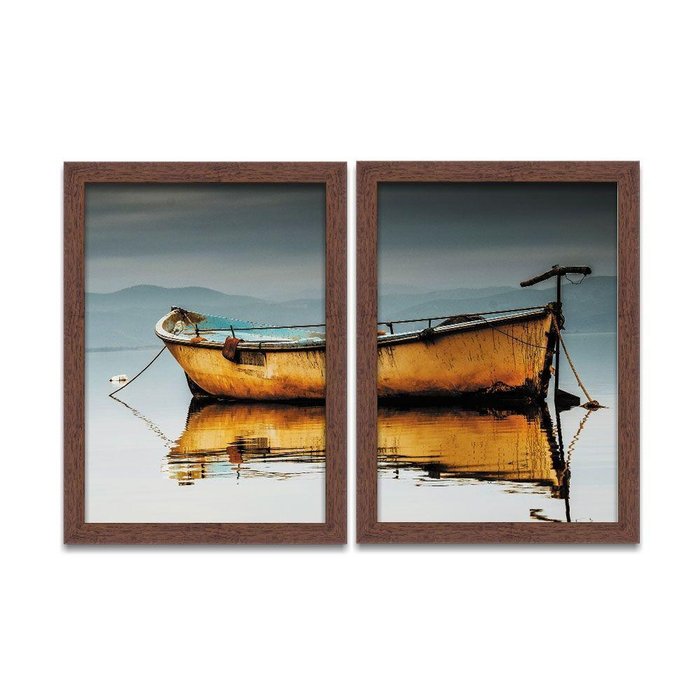 Quadro Mosaico Barco 2 Peças A3 Com Moldura E Vidro Molduras Moldura Rústica