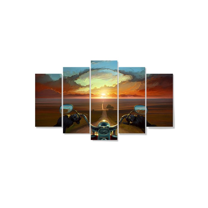Quadro Mosaico Lindo Moto Estrada Sol 5 Peças Mod412