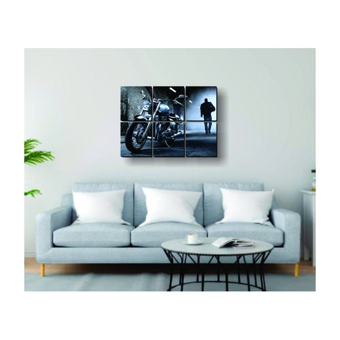 Quadro Mosaico Moto Harley 6 Peças - Impressão Uv