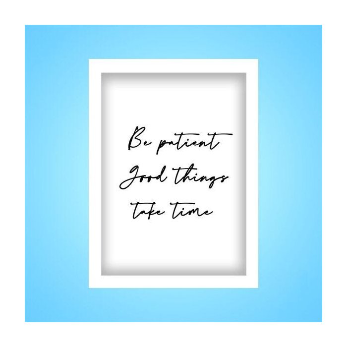 Coloque o Quadro "Be Patient, Good Things Take Time" na parede para garantir que você nunca se esqueça de uma coisa: construir coisas grandes leva tempo. É por isso, inclusive, que a paciência é uma das maiores virtudes humanas.