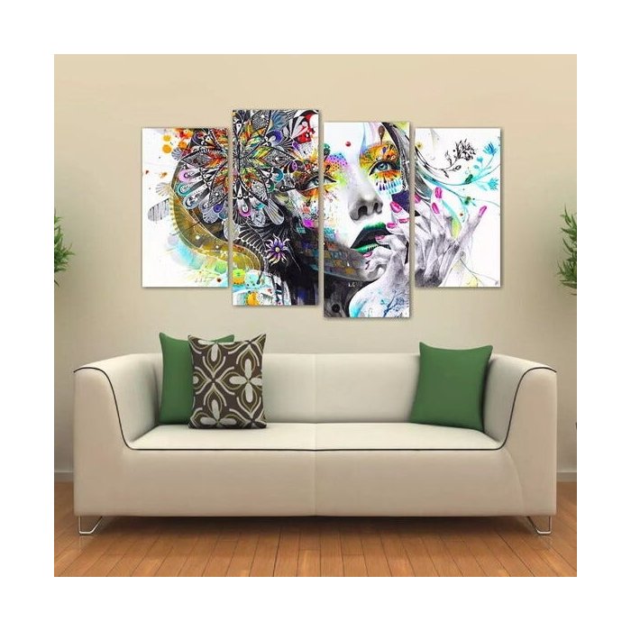 Quadro Mulher Abstrato Sala Escritório Em Tecido 4 Peças