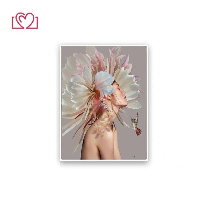 Quadro Mulher Cocar Branco Tamanho 30x40 Off White