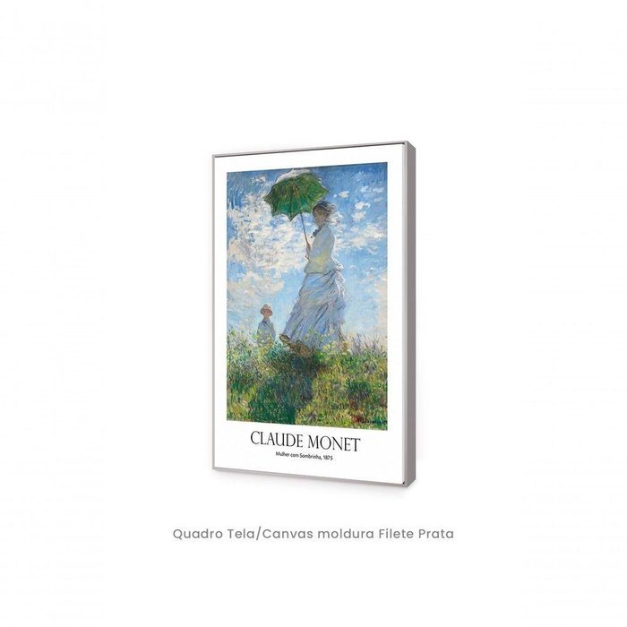Quadro Decorativo Mulher com Sombrina, 1875 de Claude Monet Quadro Tela/Canvas moldura Filete Prata - 84x119cm - Quadro Decorativo Top Quadros