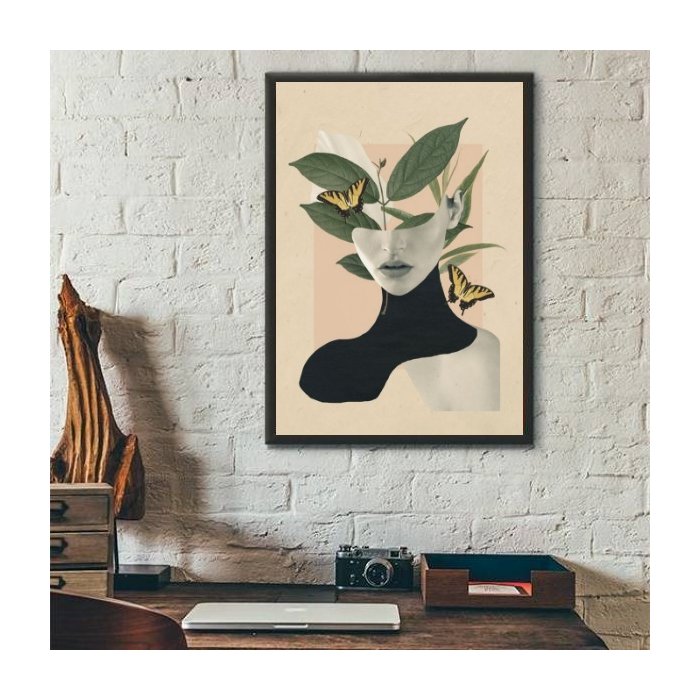 Quadro Mulher - Conexão com a Natureza 24x18cm - com Vidro:madeira Preta