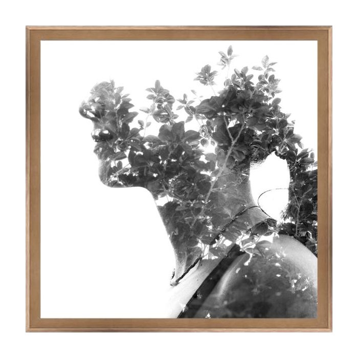 Quadro Mulher e Folhas - Impressão em Vidro - 54x54 cm