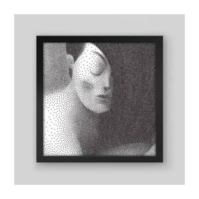 Quadro Mulher em Pontilhismo - 20x20cm - Moldura Padrão Preto