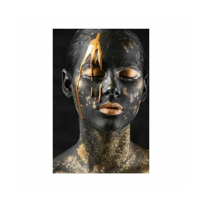 Quadro Mulher Face Tinta Borrada Preto e Dourado - Tela Única - 200 x 120 cm - Branca