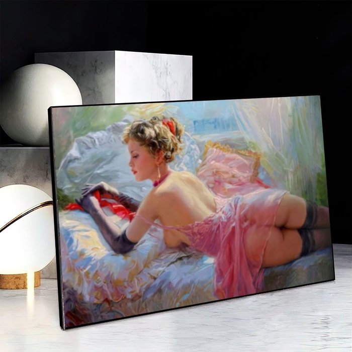 Quadro Mulher Posando:60X40 cm/DOURADA