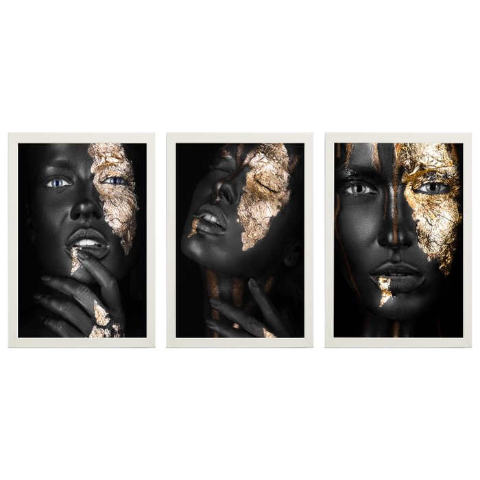 Quadro Mulheres Negras Preto E Dourado M 3 Moldura Branco